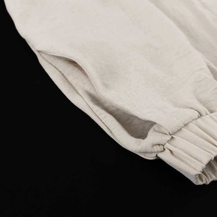 Bağcık detaylı geniş kesim takım, özgün tasarımı ve akıcı siluetiyle tarzınızı yansıtıyor. Geniş kollu üstü ve bol paça pantolonu sayesinde gün boyu konfor sağlarken, şık detaylarıyla dikkat çekici bir görünüm sunuyor.