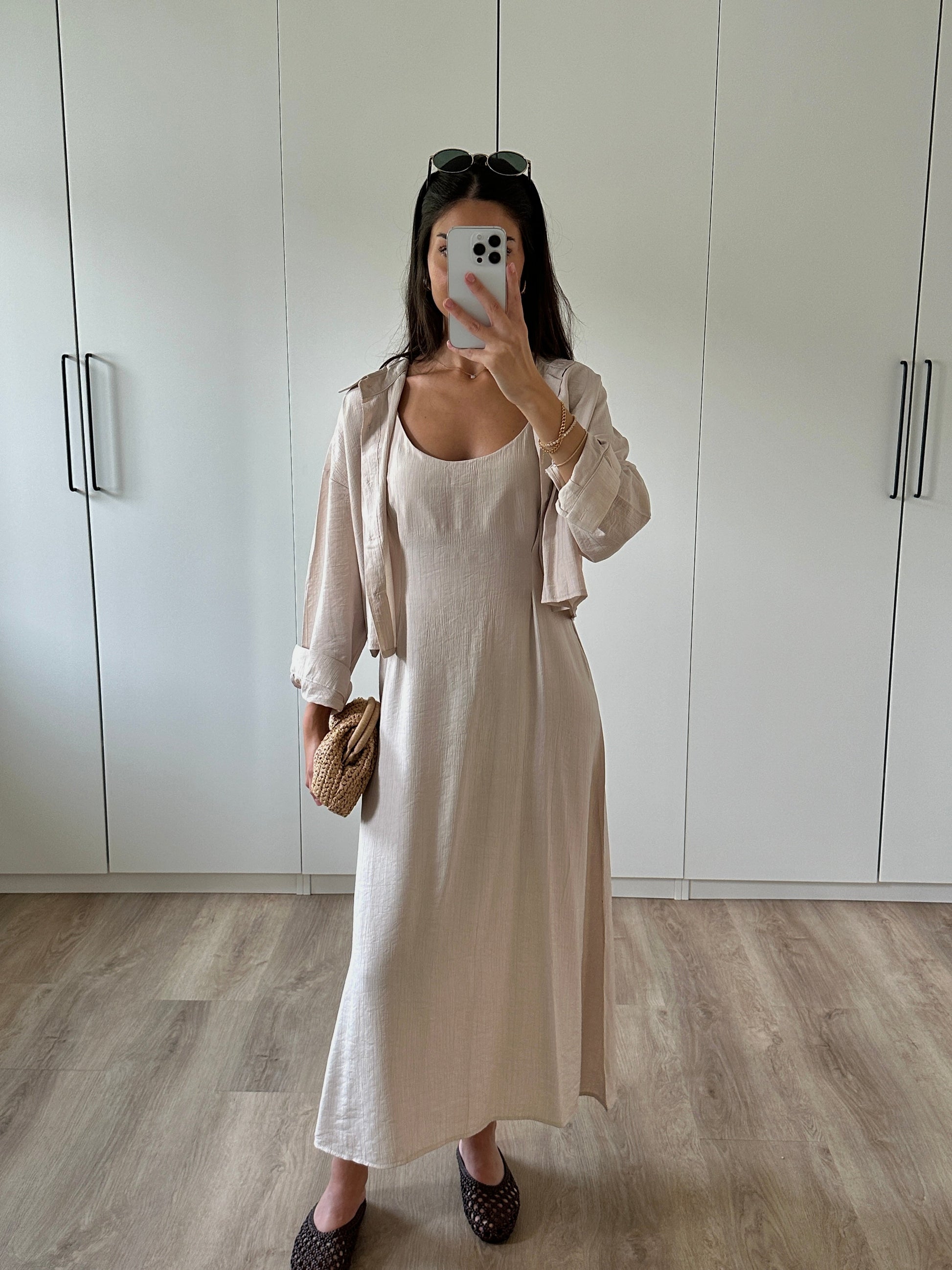 Rahat kesimi, doğal dokusu ve zamansız rengiyle yazdan sonbahara geçişin en şık parçası. Günlük şıklıkta ya da ofis stilinde rahatça kullanılabilir.
