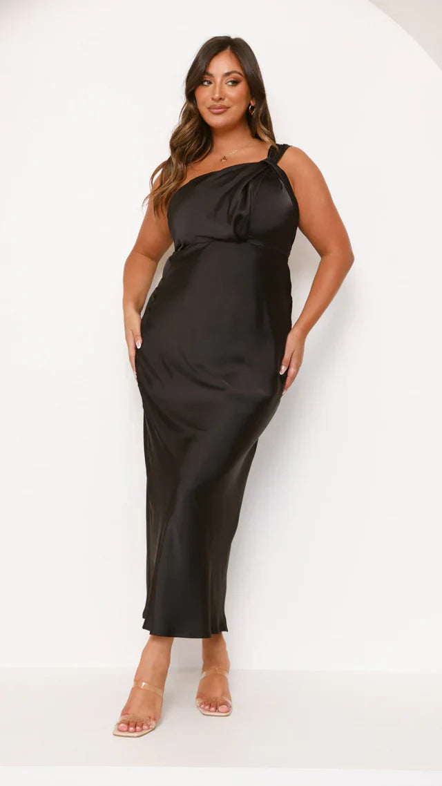Zamansız bir zarafet, modern bir dokunuşla buluşuyor. Lucienne elbise, tek omuz detayı ve dökümlü saten kumaşıyla her adımda asil bir siluet yaratır. Vücuda yumuşakça oturan bu kesim; ister özel davetlerde ister nikah gibi unutulmaz anlarda, ışığın en zarif şekilde senin üzerinde parlamasını sağlar.